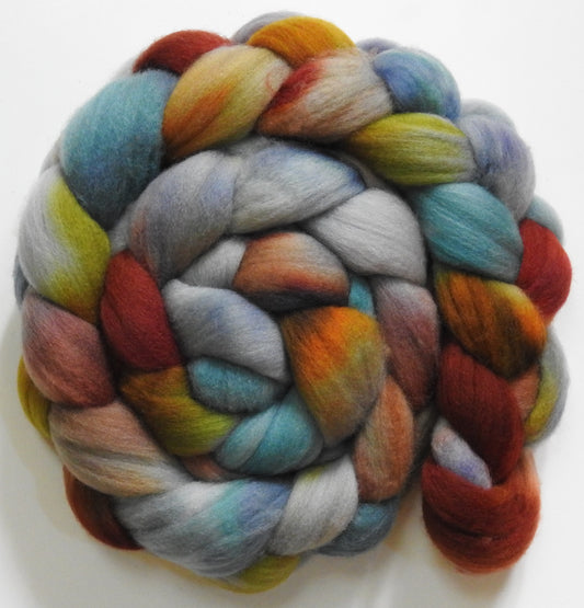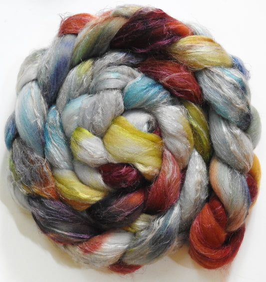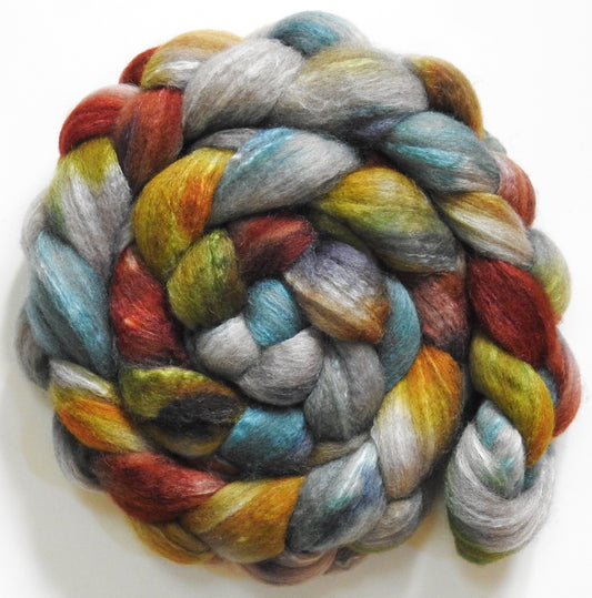Iron Age (5.6 oz) - Batt in a Braid #31 - Polwarth/ Mulberry Silk / Baby Alpaca / Rainbow Firestar/ Tencel( 40/25/15/10/10)