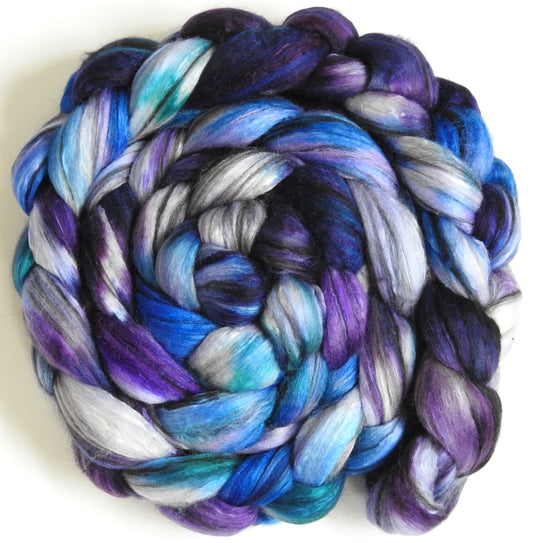 Cold Shoulder (5.7 oz.) - Batt in a Braid #9 - Superfine Merino/ Mulberry Silk / Black Alpaca (50/40/10)