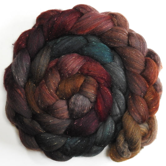 Merpeople (5.2 oz) - Batt in a Braid #59- Merino/ Baby Camel/ black Tussah Silk/ Gold Stellina(40/25/25/10)