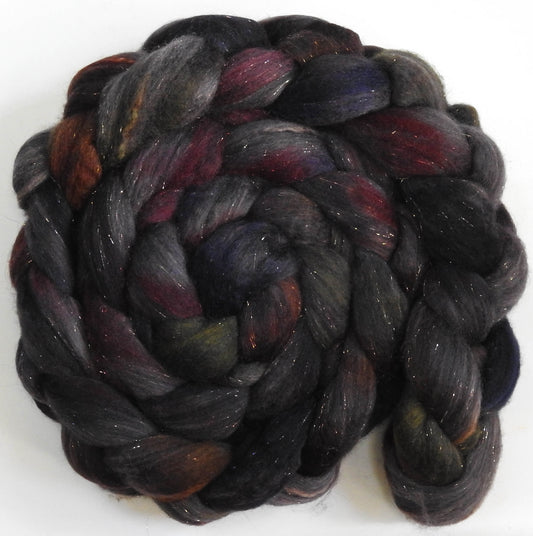 Banksy (5.6 oz) - Batt in a Braid #59- Merino/ Baby Camel/ black Tussah Silk/ Gold Stellina(40/25/25/10)
