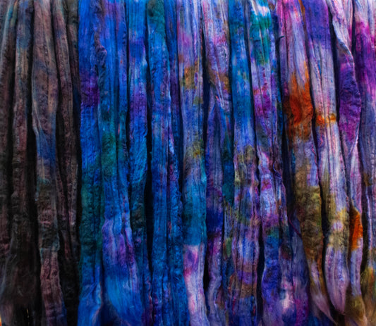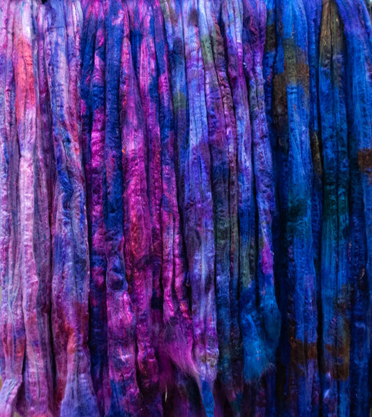 Delphinium - Gradient Braid Set -(5.7 oz) - Batt in a Braid #39 - Merino/ Mulberry Silk / Sari Silk (50/25/25)