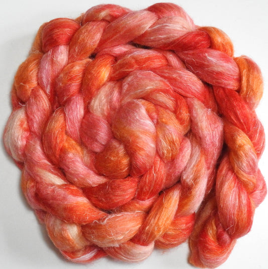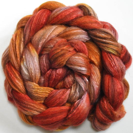 Hibiscus (5.6 oz.) - Batt in a Braid #41 - Llama / Merino ( 18 mic.)/ Mulberry silk/ Stellina (40/30/25/5)