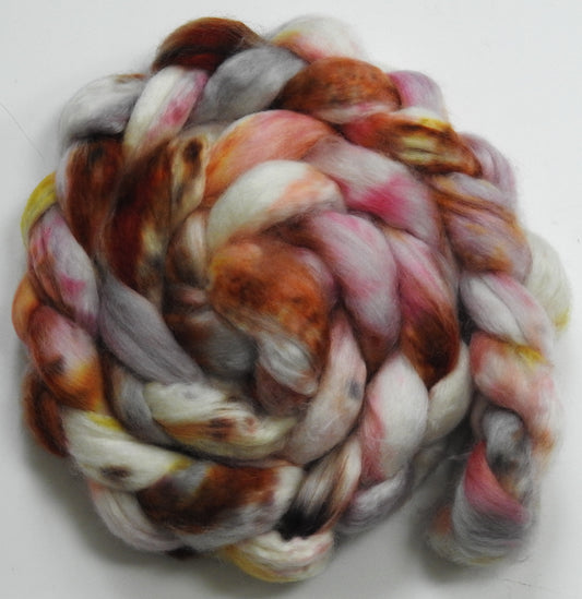 Tea Rose-(5.6 oz) Batt in a Braid #49- Polwarth/Silk/ Tweed (50/25/25)