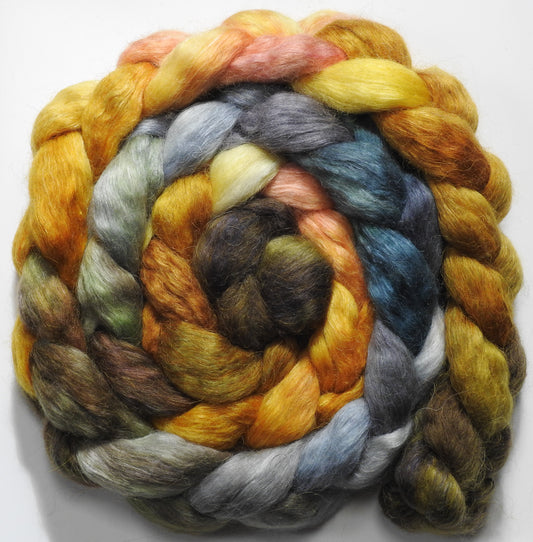 Tarnished (5.3 oz) - Batt in a Braid #52- Wensleydale/ Mulberry silk/ Polwarth (60/25/15)