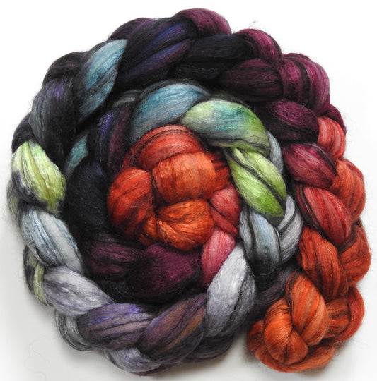 Merpeople (5.6 oz.) - Batt in a Braid #9 - Superfine Merino/ Mulberry Silk / Black Alpaca (50/40/10)