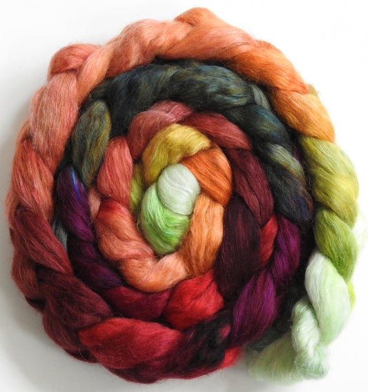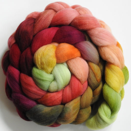 Icelandic Poppies(5.4 oz) - Batt in a Braid #52- Wensleydale/ Mulberry silk/ Polwarth (60/25/15)