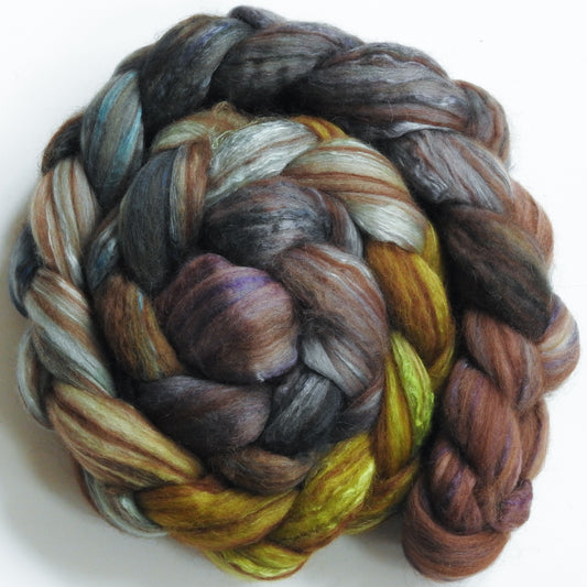 Scholarly (5.5 oz) - Batt in a Braid #52- Wensleydale/ Mulberry silk/ Polwarth (60/25/15)