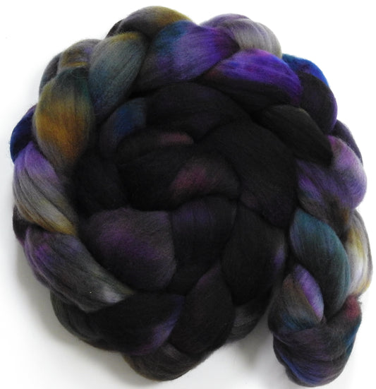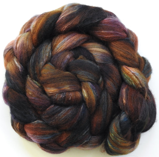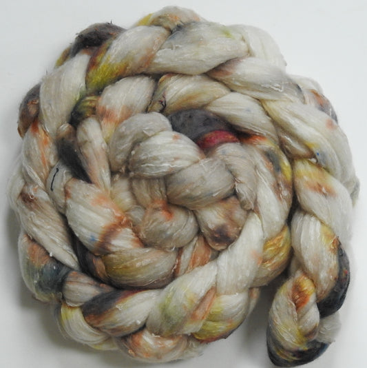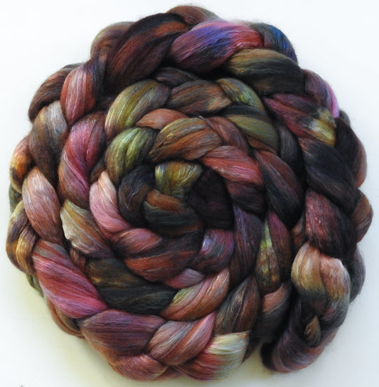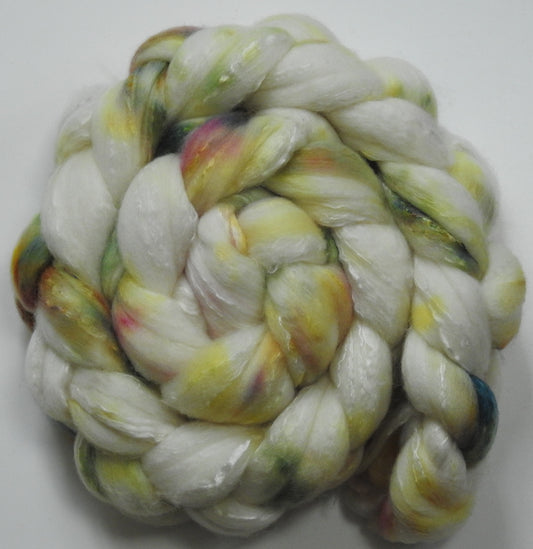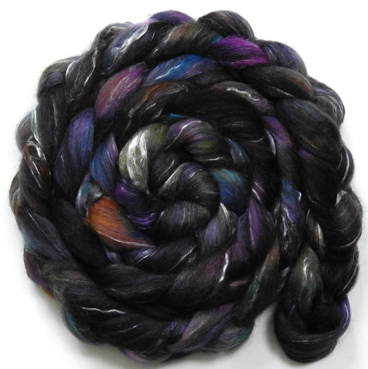 Wednesday (6.2 oz) - Batt in a Braid #31 - Polwarth/ Mulberry Silk / Baby Alpaca / Rainbow Firestar/ Tencel( 40/25/15/10/10)