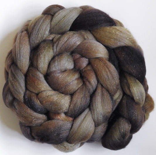 Driftwood (5.6 oz) Batt in a Braid #58-Superfine Merino/ Tussah silk/ Gold Stellina(65/25/10)