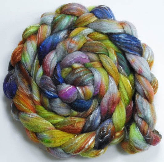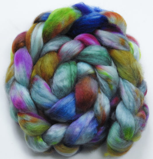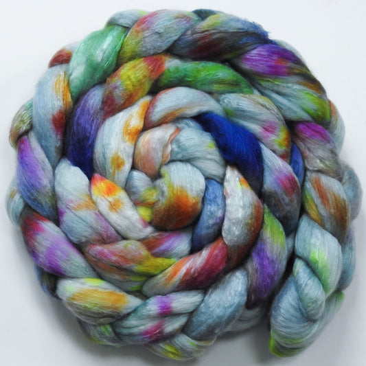 Head in the Clouds (5.7 oz) - Batt in a Braid #31 - Polwarth/ Mulberry Silk / Baby Alpaca / Rainbow Firestar/ Tencel( 40/25/15/10/10)