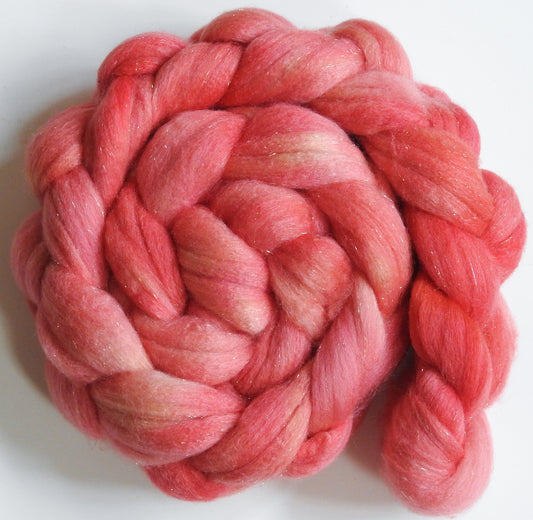 Sugar Coral -(5.6 oz) Batt in a Braid #58-Superfine Merino/ Tussah silk/ Gold Stellina(65/25/10)