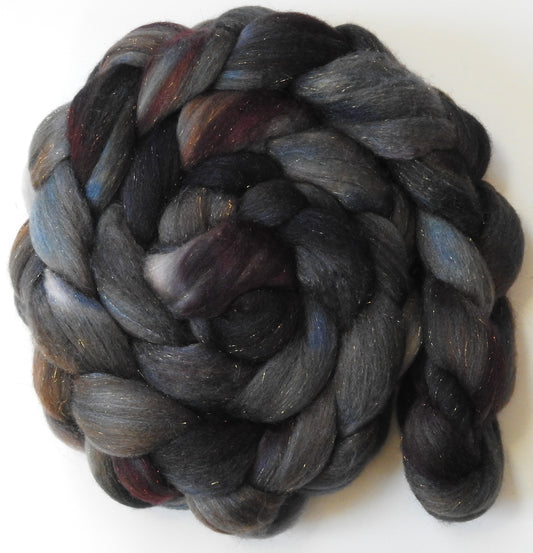 French Roast -(5.6 oz) Batt in a Braid #58-Superfine Merino/ Tussah silk/ Gold Stellina(65/25/10)