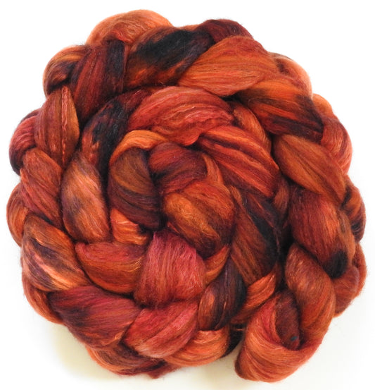 Fire Pit (5.8 oz) - Batt in a Braid #7 - Polwarth/ Manx / Mulberry silk/ Firestar (30/30/30/10)