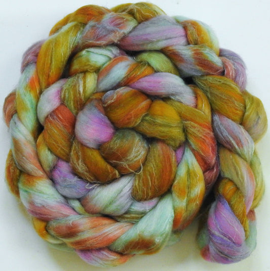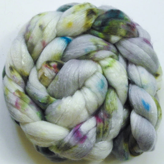 Nympheas-(6 oz) Batt in a Braid #39 - Merino/ Mulberry Silk / Sari Silk (50/25/25)