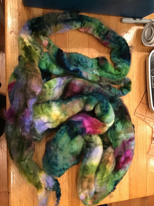 Saltwater Taffy-(5.3 oz.) Batt in a Braid #60- Southdown/ Bfl/ Bio-nylon (50/25/25)