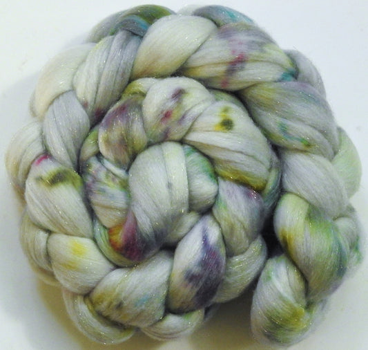 Moonstone-(5.5 oz) Batt in a Braid #58-Superfine Merino/ Tussah silk/ Gold Stellina(65/25/10)