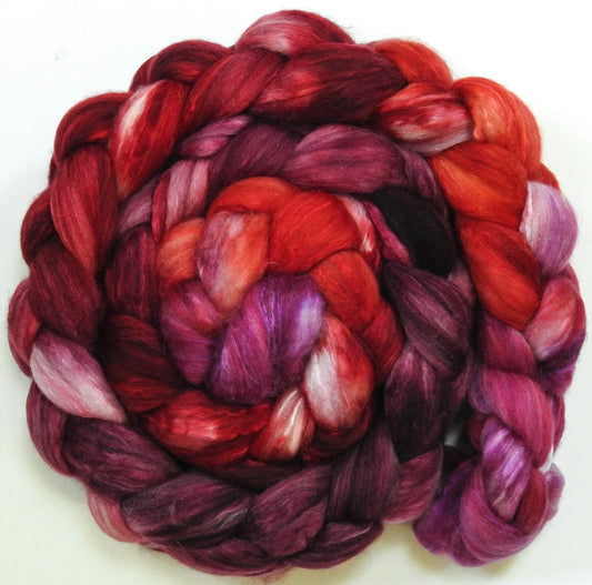 Maraschino Cherry Light(5.7 oz) - Batt in a Braid #52- Wensleydale/ Mulberry silk/ Polwarth (60/25/15)