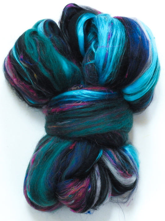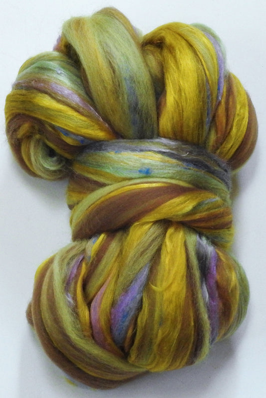 Calypso (5.6 oz) - Batt in a Braid #52- Wensleydale/ Mulberry silk/ Polwarth (60/25/15)