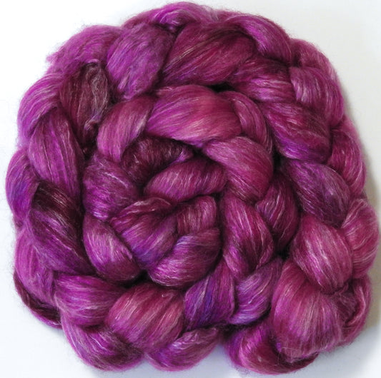 Dragonfruit (5.6 oz) - Batt in a Braid #52- Wensleydale/ Mulberry silk/ Polwarth (60/25/15)