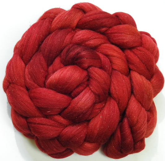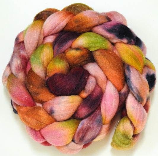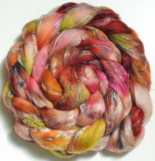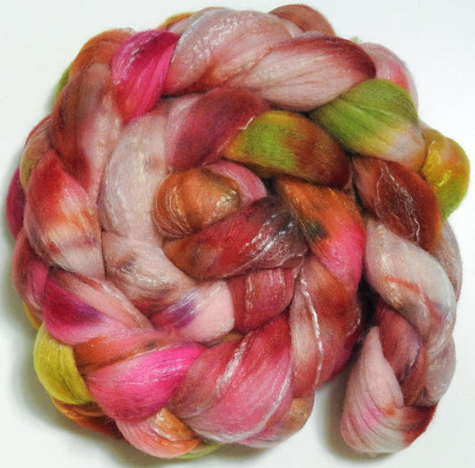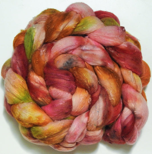 Poppy - Batt in a Braid #58-(5.3 oz)- Superfine Merino/ Tussah silk/ Gold Stellina(65/25/10)