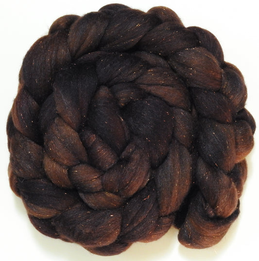 Dark Chocolate -(5.3 oz) Batt in a Braid #58-Superfine Merino/ Tussah silk/ Gold Stellina(65/25/10)