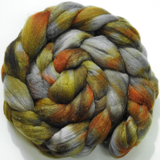 Bronze -(5.2 oz) Batt in a Braid #58-Superfine Merino/ Tussah silk/ Gold Stellina(65/25/10)