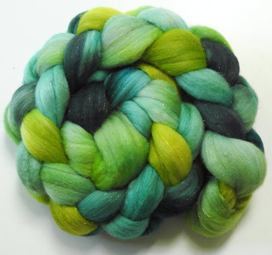 Sea Glass- Batt in a Braid #58- Superfine Merino/Tussah silk/Gold Stellina(65/25/10)