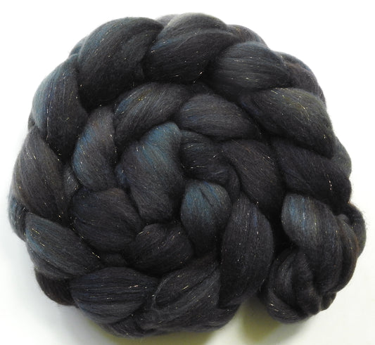 Lights Out - Batt in a Braid #58-(5.2 oz) Superfine Merino/ Tussah silk/ Gold Stellina(65/25/10)