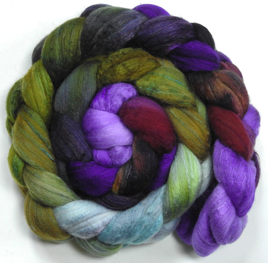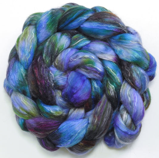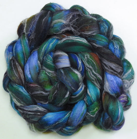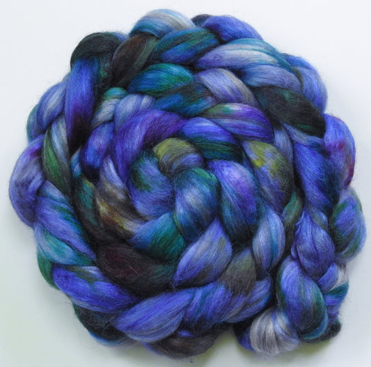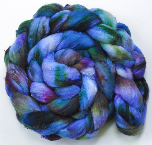 Spanish Bluebells (5.4 oz) - Batt in a Braid #31 - Polwarth/ Mulberry Silk / Baby Alpaca / Rainbow Firestar/ Tencel( 40/25/15/10/10)