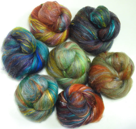 Flight of the Bumblebee Set (12.3 oz) - Batt in a Braid #31 - Polwarth/ Mulberry Silk / Baby Alpaca / Rainbow Firestar/ Tencel( 40/25/15/10/10)