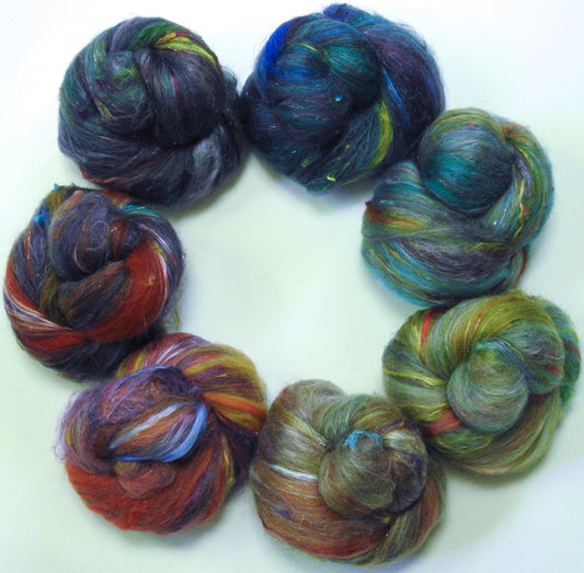 Demoiselles Coiffées- Sparkle Roly-Poly Batts - (4 oz)- 30% Corriedale X & Border Leicester/CVM/Rambo fleeces; polwarth, merino, silk, bamboo, silk noil, angelina