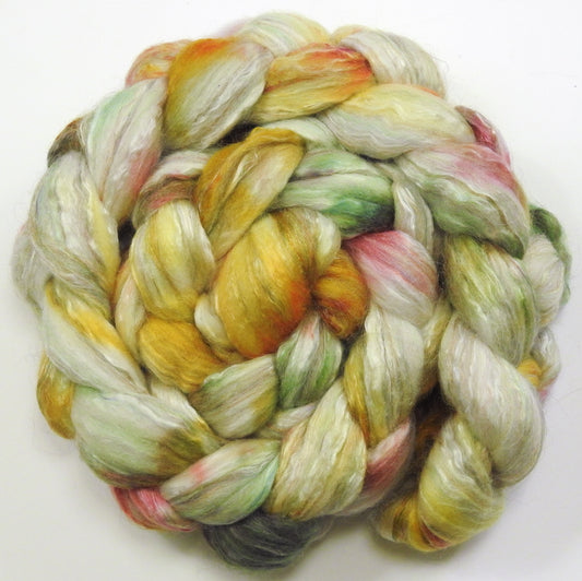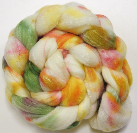 Sorbet (5.5 oz) - Batt in a Braid #31 - Polwarth/ Mulberry Silk / Baby Alpaca / Rainbow Firestar/ Tencel( 40/25/15/10/10)