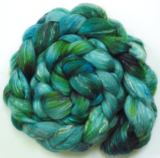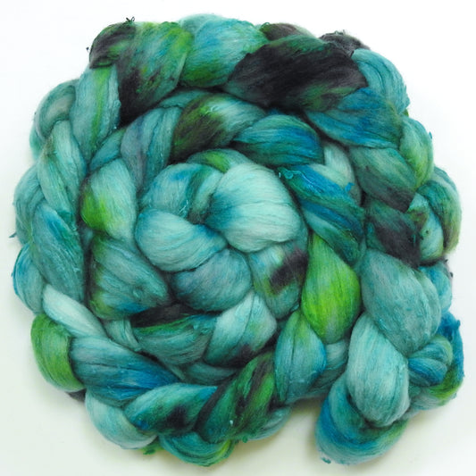 Scuba Diving (5.4 oz) - Batt in a Braid #31 - Polwarth/ Mulberry Silk / Baby Alpaca / Rainbow Firestar/ Tencel( 40/25/15/10/10)