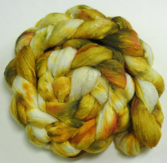 Daffodil (5.4 oz) - Batt in a Braid #31 - Polwarth/ Mulberry Silk / Baby Alpaca / Rainbow Firestar/ Tencel( 40/25/15/10/10)