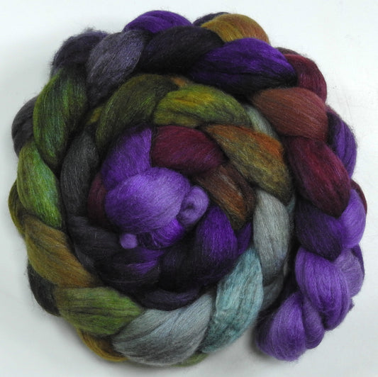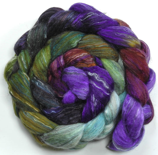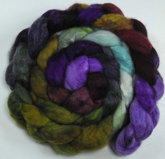 Cabbages & Kings(darker) (5.1 oz) - Batt in a Braid #31 - Polwarth/ Mulberry Silk / Baby Alpaca / Rainbow Firestar/ Tencel( 40/25/15/10/10)