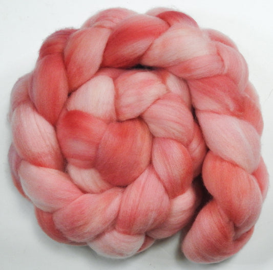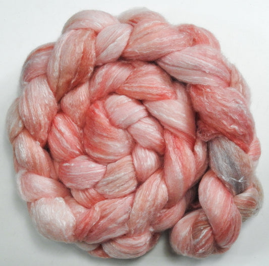 Pink Grapefruit (6.3 oz) - Batt in a Braid #31 - Polwarth/ Mulberry Silk / Baby Alpaca / Rainbow Firestar/ Tencel( 40/25/15/10/10)
