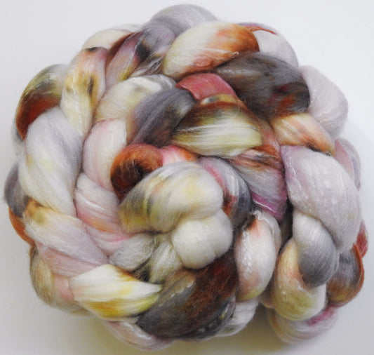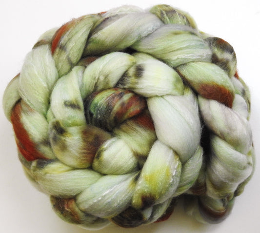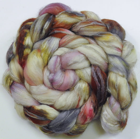 Pollen (5.4 oz) - Batt in a Braid #31 - Polwarth/ Mulberry Silk / Baby Alpaca / Rainbow Firestar/ Tencel( 40/25/15/10/10)