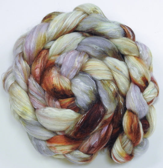 Cockle Shells (5.4 oz) - Batt in a Braid #31 - Polwarth/ Mulberry Silk / Baby Alpaca / Rainbow Firestar/ Tencel( 40/25/15/10/10)