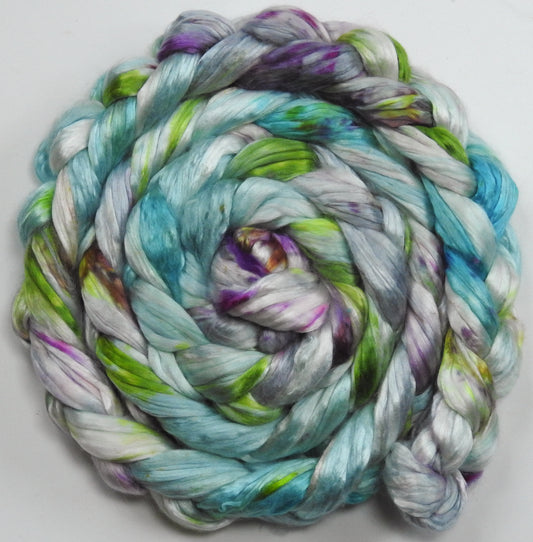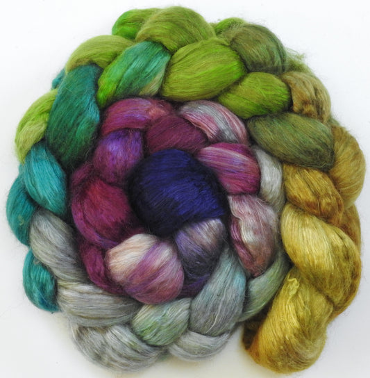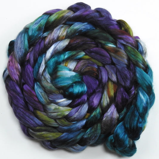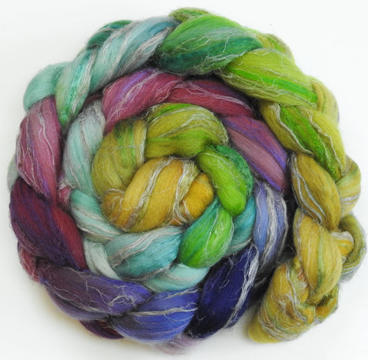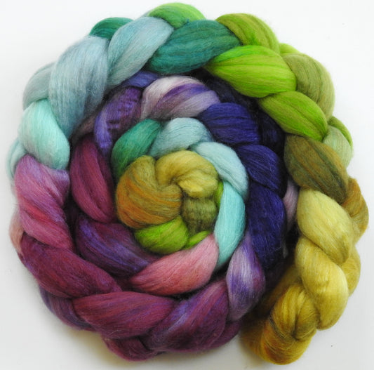Pasque Flower-(5.4 oz) Batt in a Braid #56- Superfine Merino/Tussah Silk/ Cashmere (60/25/15)
