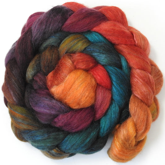 Smaug -5.5 oz - Batt in a Braid #1- Falkland/ Grey Baby Alpaca/ Tussah Silk/ Firestar (40/25/25/10)