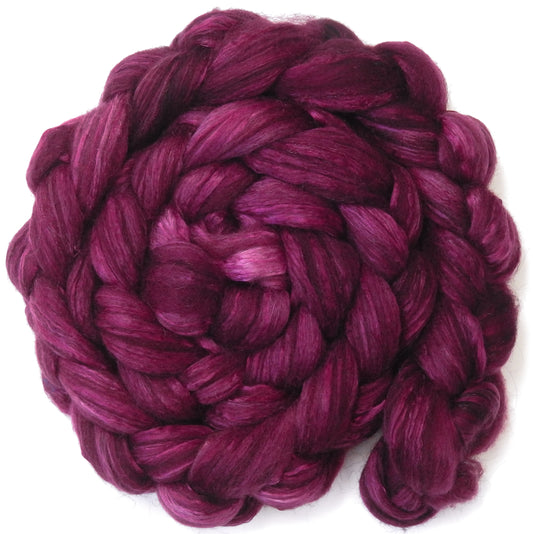 Black Cherry (5.4 oz) - Batt in a Braid #7 - Polwarth/ Manx / Mulberry silk/ Firestar (30/30/30/10)
