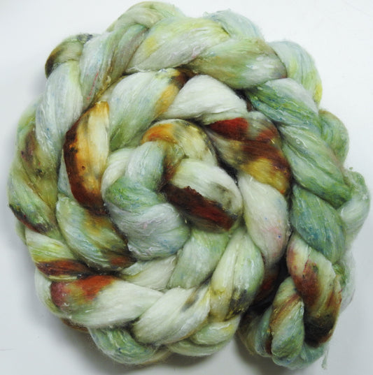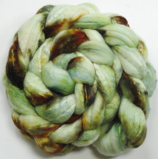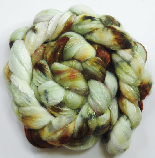 Batt in a Braid #1-Catkin -(5.5 oz.) Falkland/ Grey Baby Alpaca/ Tussah Silk/ Firestar (40/25/25/10)
