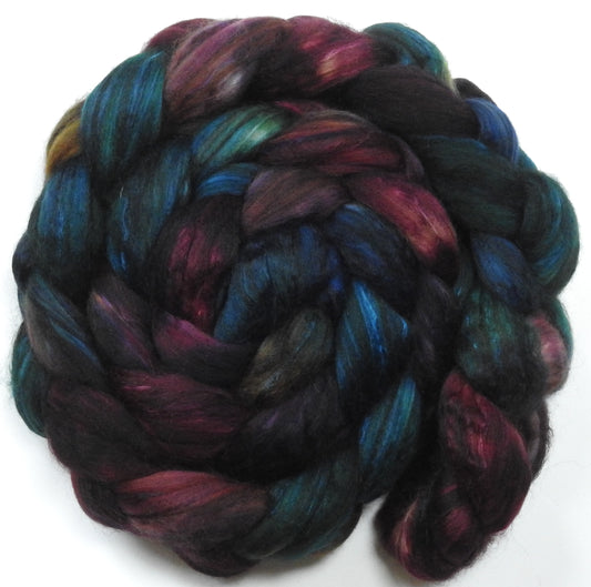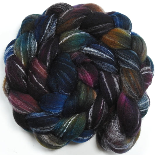Cloak & Dagger- Batt in a Braid #55- Shetland/ Mulberry Silk/ Black Bamboo (50/25/25)