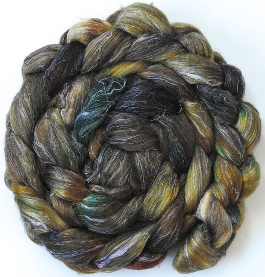 Dragonfly (5.3 oz) - Batt in a Braid #55- Shetland/ Mulberry Silk/ Black Bamboo (50/25/25)