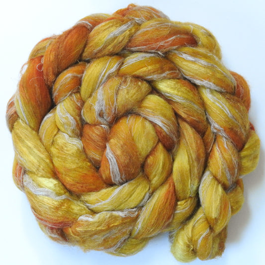 Golden Hour (5.8 oz) - Batt in a Braid #52- Wensleydale/ Mulberry silk/ Polwarth (60/25/15)
