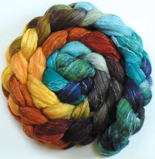 Harvest Moon (5.8 ) - Batt in a Braid #39 - Falkland Merino/ Mulberry Silk / Sari Silk (50/25/25)