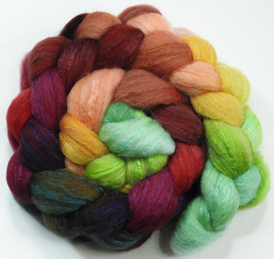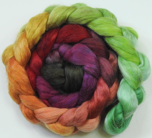 Icelandic Poppies-Batt in a Braid #39 (5.9 oz)- Falkland Merino/ Mulberry Silk / Sari Silk (50/25/25)