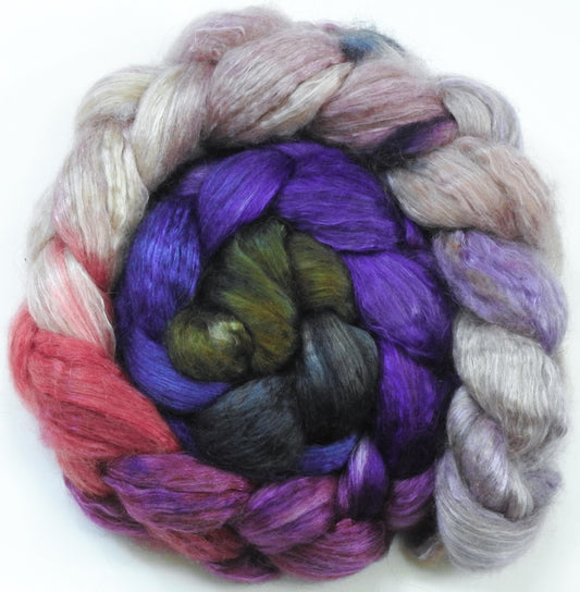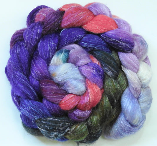Cherry Blossoms @ Night (6 oz) -Batt in a Braid #39- Falkland Merino/ Mulberry Silk / Sari Silk (50/25/25)
