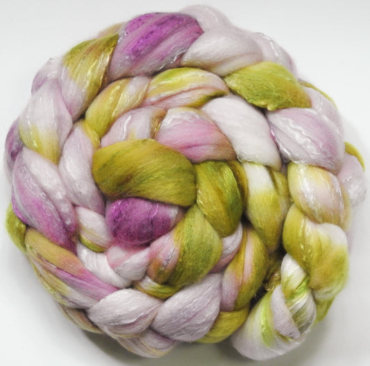 Honeysuckle (5.8 oz.) -Glazed Solid -Batt in a Braid #31- Polwarth/ Mulberry Silk / Baby Alpaca / Rainbow Firestar/ Tencel( 40/25/15/10/10)
