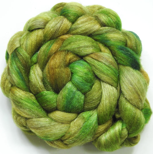 Lime Rickey - Glazed Solid- (5.3 oz) Batt in a Braid #53- YAK/ Tussah silk/ Superfine Merino/Gold Stellina(30/30/30/10)